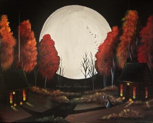 The Perfect Autumn painting for any witch to display with all their collectibles.